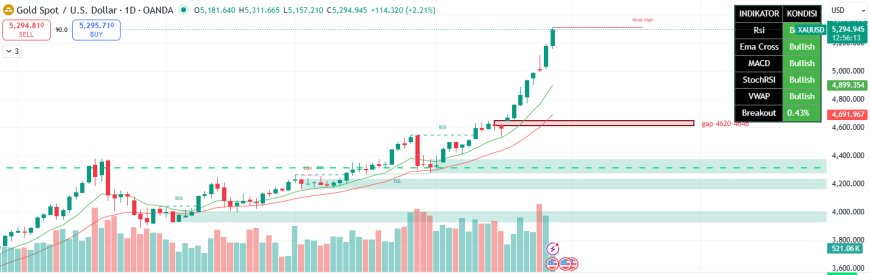 Ingat harga emas tidak naik lurus ke atas seperti tiang tetapi konsisten naik membentuk zig-zag, dalam perjalanannya mencapai harga tertinggi tetap ada kemungkinan-kemungkinan untuk koreksi turun, dan ada gap di harga $4620, yah waspada aja pokoknya mah, kecuali memang untuk disimpan 20 tahun kedepan untuk biaya kuliah anak.