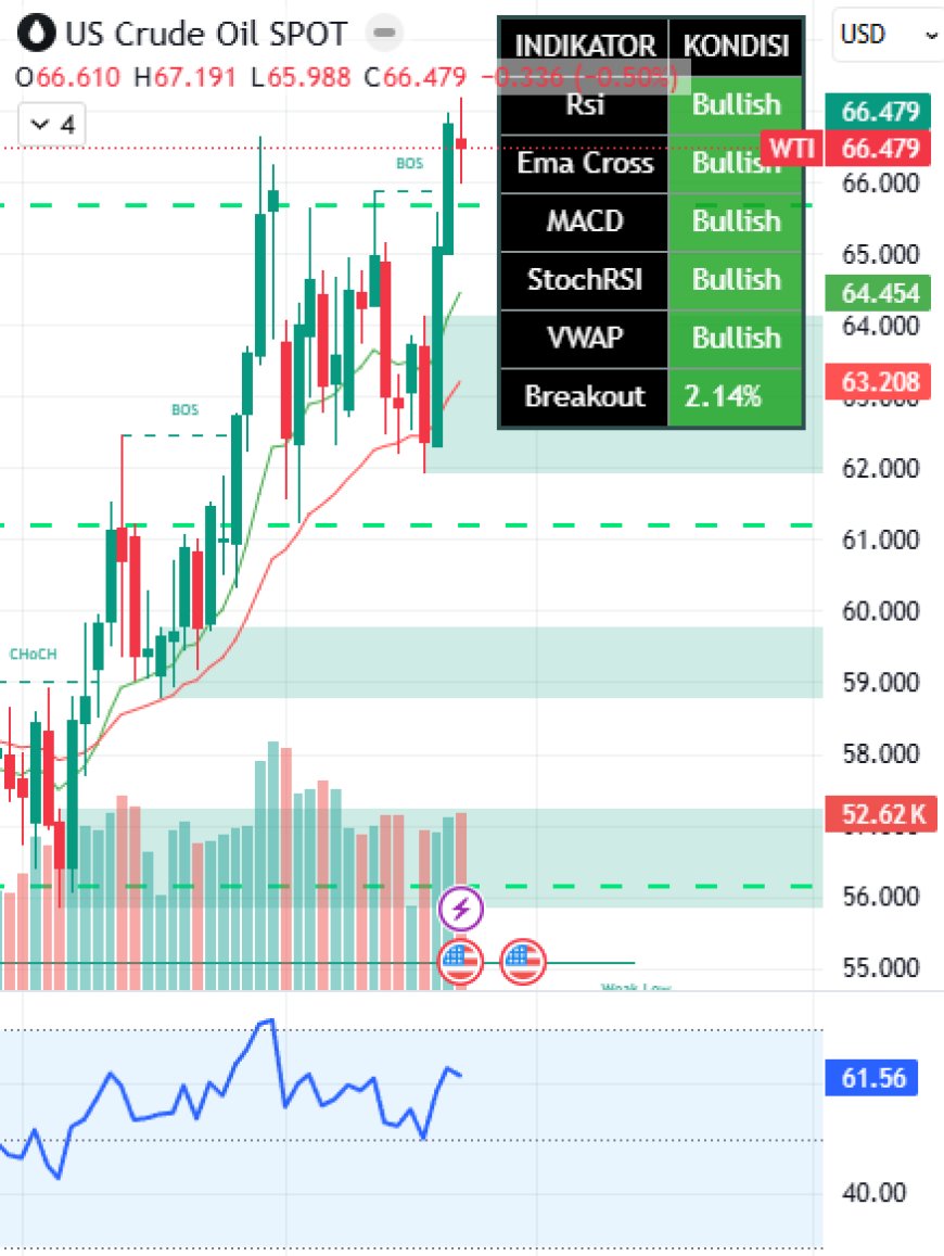 minyak diprediksi naik, mungkin bisa ke kisaran $100 yang saat artikel ini ditulis masih di harga kisaran $67 ~ 2 bulan terakhir aja batangnya sudah hijau. Minyak naik dollar naik, minyak naik Bitcoin koreksi. Ada perang emas naik dengan syarat tidak sedang dipermainkan pemain besar.